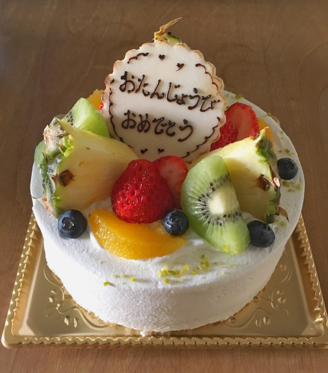 バースデーケーキでフルーツショートの5号を注文しました。5号で5~6カットぐらいの大きさです。イチゴやキウイ、パイナップルなどが盛りだくさんでトッピングされており、中にも2段生クリームと共にそれらのフルーツがサンドされていました。程よい甘さでとても美味しかったです。家族にも好評でした。