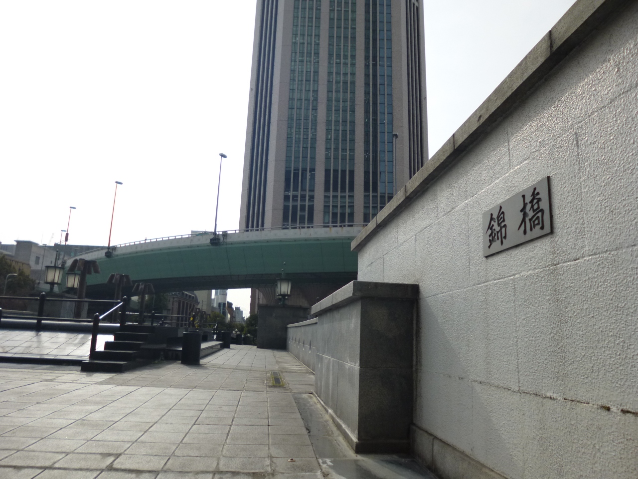 錦橋は、土佐堀川にかかる橋のひとつですが、2つの特徴的な建物を結んでいます。