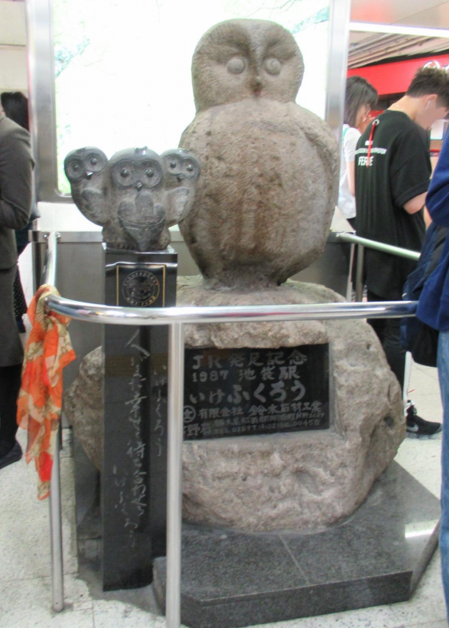 「いけふくろう像」を見るのには良いが、待合せ場所の目印としてはふくろうの背が低く小さいうえ、あまり広くない通路の真ん中にあるので、混雑時は特に分かり難く、この周りでじっとしていると通行人の邪魔になったり と注意が必要です。