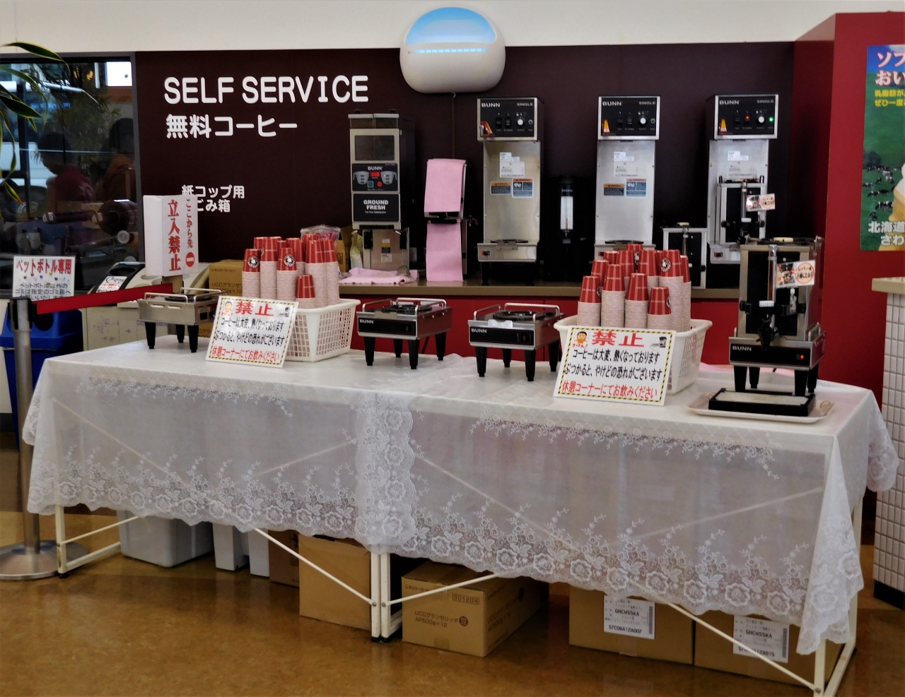 無料で飲めるコーヒーも有り、ちょっと座って飲みました。