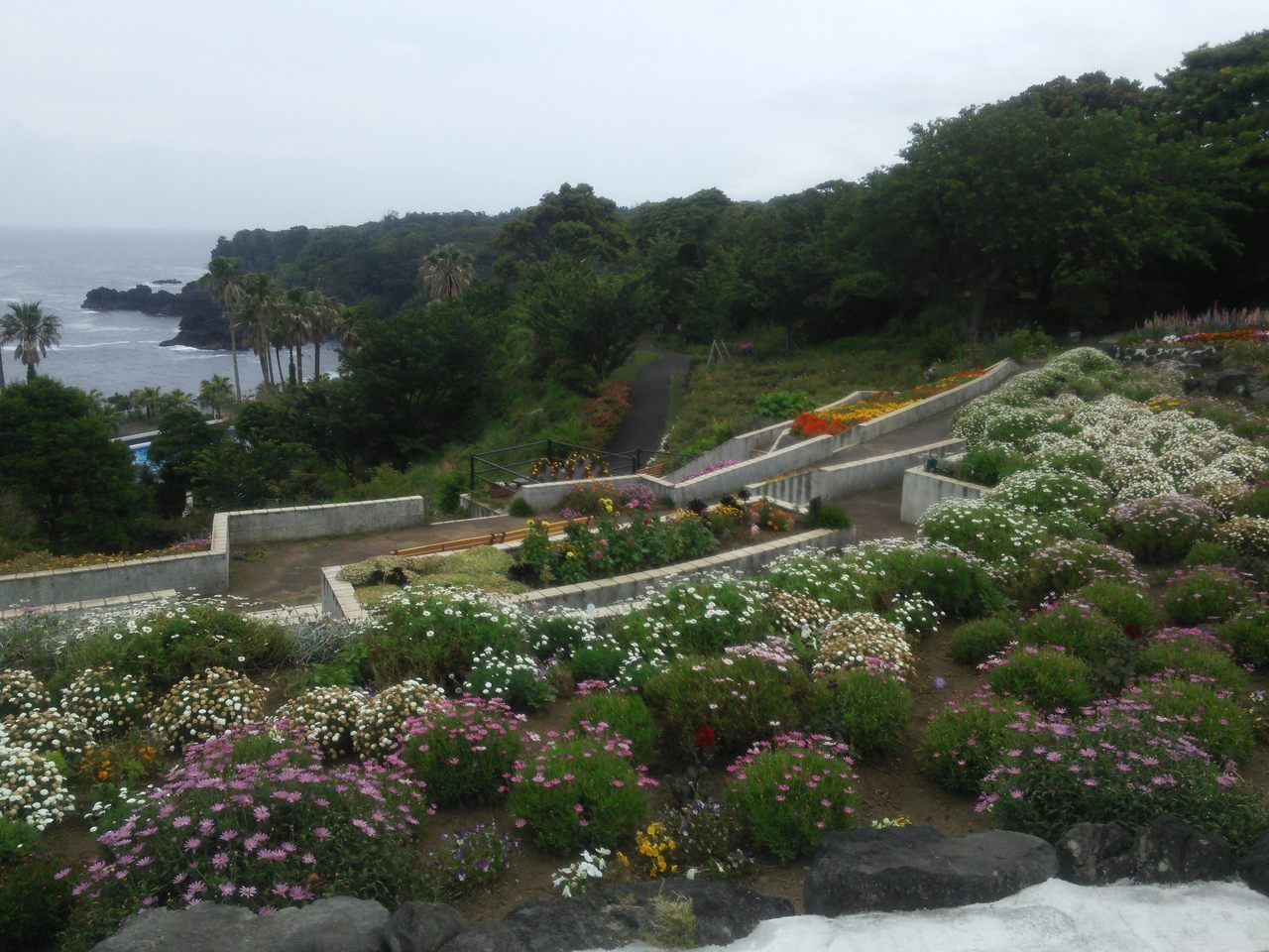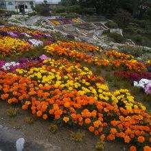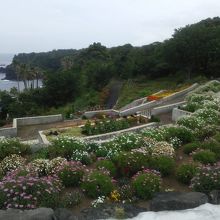 海を望む素晴らしい景色。カラフルなお花畑のお庭とランプの美術館があります。