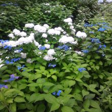 斜面を利用してアジサイが咲いているので、お花を見ながら散策を楽しめます。