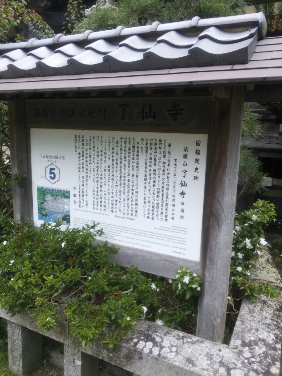 日米和親条約付録下田条約の調印が行われたお寺です。本堂は木造で、とても小さなお寺です。温暖な気候にあり、お寺の周りにはアメリカジャスミンの木が植えてあります。