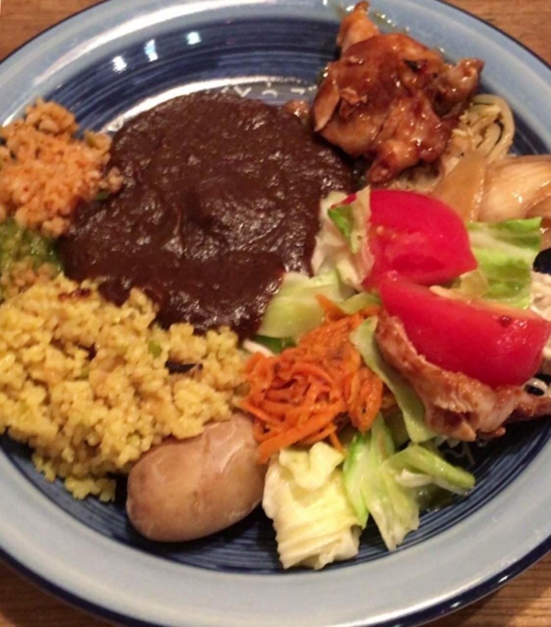ランチはカレー数種類、ご飯も五穀米やチャーハン等数種類、サラダ、肉、果物、お茶等、1080円で食べ放題。お腹いっぱいになります。