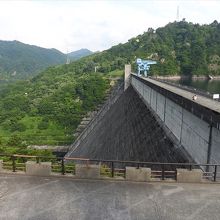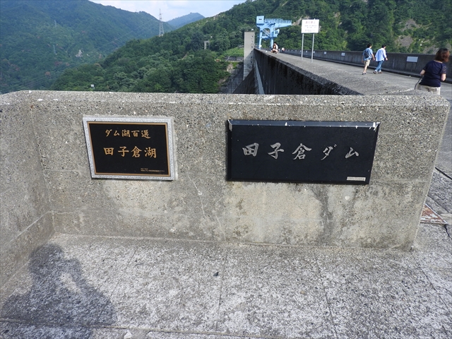 重力式コンクリートダムと呼ぶのだそうです.黒部ダムほどではないのかも知れませんが,かなり高さのあるダムで,下を見下ろしたときの迫力は満点です.ダムによってできた田子倉湖は,日本のダム湖百選にも選ばれているとの説明書きがありました.展望台には休憩所や記念館があり,紅葉のシーズンには多くの観光客が訪れるそうです.
