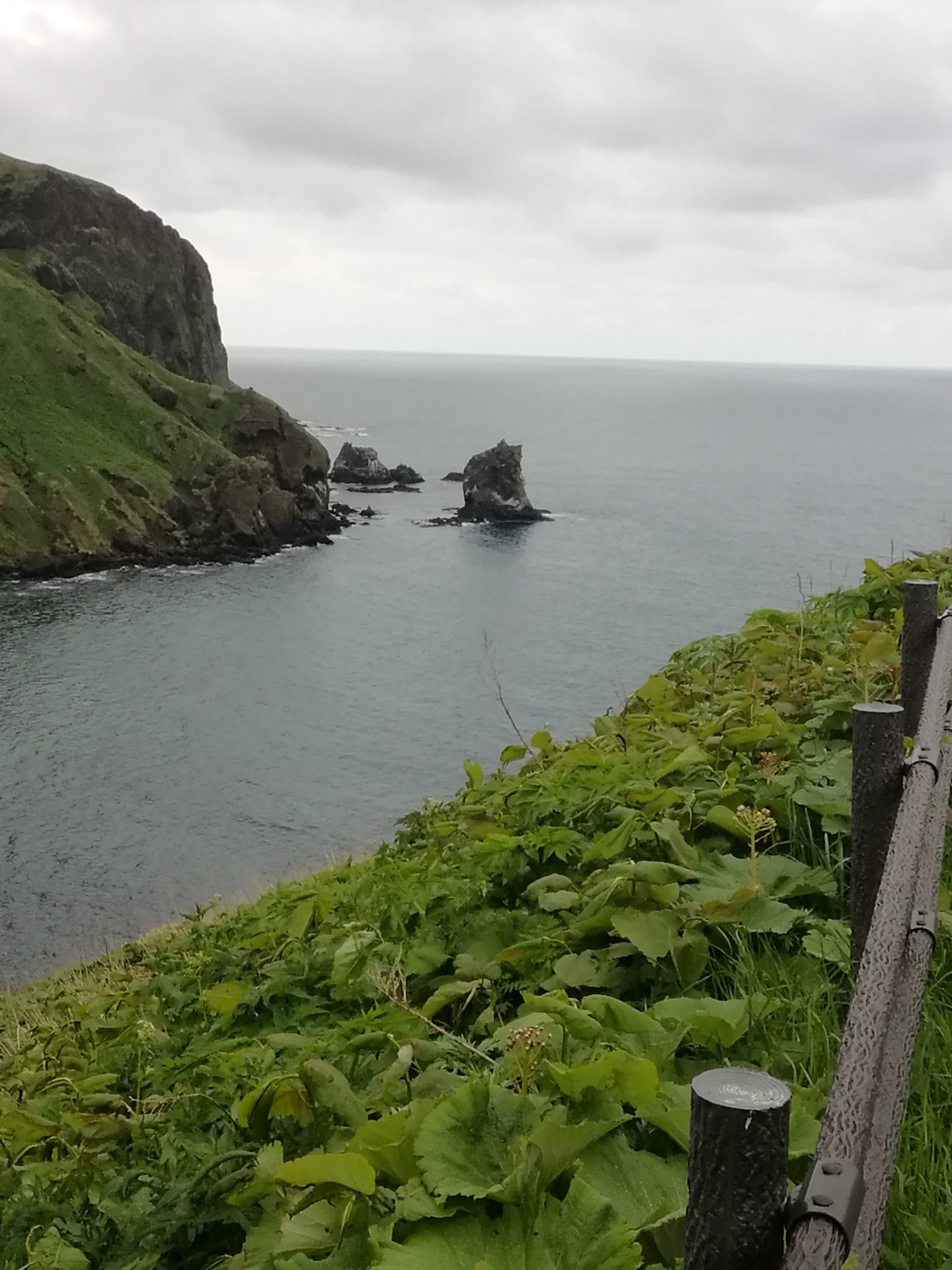 香深港フェリー乗り場からバスで15分位のところに北海道礼文島の西側に位置する『猫台・桃台』があります。この展望台からは海側に猫岩、後ろの山側に桃岩が望めます。展望台の脇には高山植物が生えていて心を和やかにさせてくれます。ここから見る猫岩,桃岩は名前の由来がはっきりとわかる形をしています。