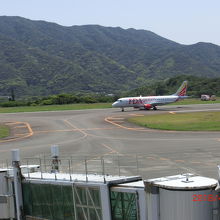 八丈島空港の屋上のデッキに出て着陸を見ました。