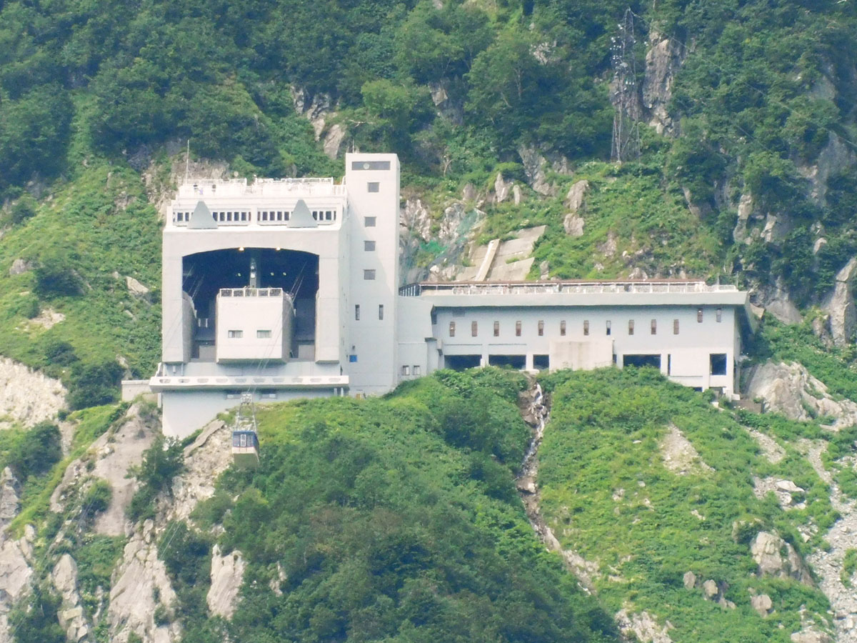ダムだけでなく、対岸の立山も佳景です。大観峰駅の建物も眺めることができ、発着するロープウェイを見ることができました。