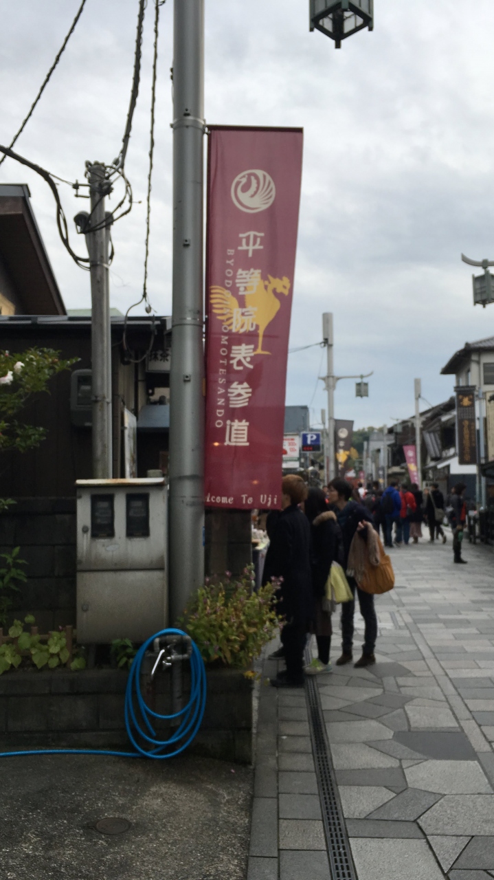 京阪宇治駅から宇治橋をわかりきった場所からはじまる平等院表参道。沿道には伊藤久右衛門さんなどお茶屋さんや軽食屋さんが立ち並び土日や休日ともなるとかなりの混雑になるようになりました。たまに車も来ることがありますが、地元の方の運転は基本的に丁寧です。