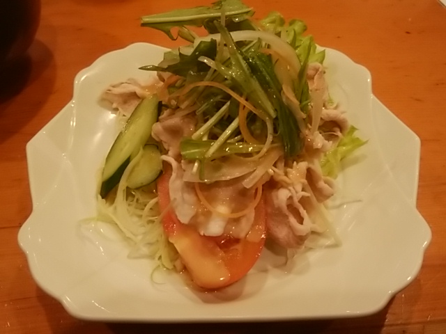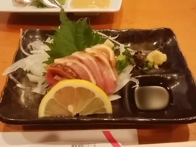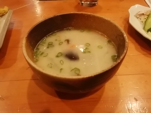 食べたかった郷土料理をいろいろ注文。きびなご刺身、鳥刺し、冷しゃぶサラダ、さつま汁、味噌おでん…。味噌おでんは、単品から好きなものを選べます。1皿めが美味しくて、さらに注文しちゃいました。色は濃いけど、いいお味。