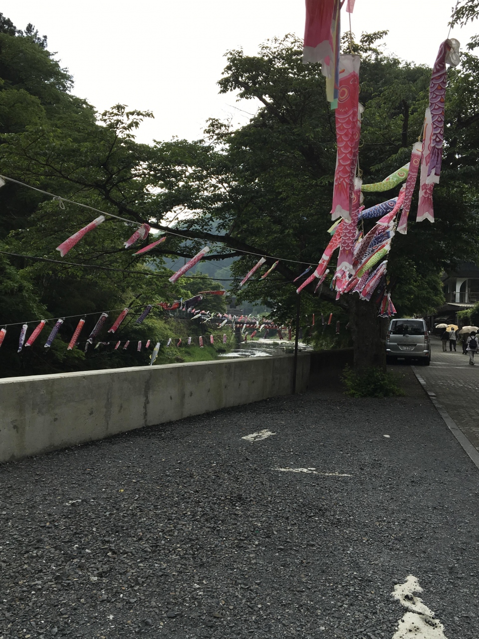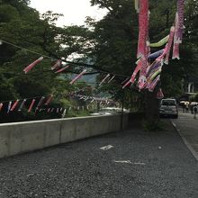 目の前の滝川にはたくさんの鯉のぼりが泳いでいました。