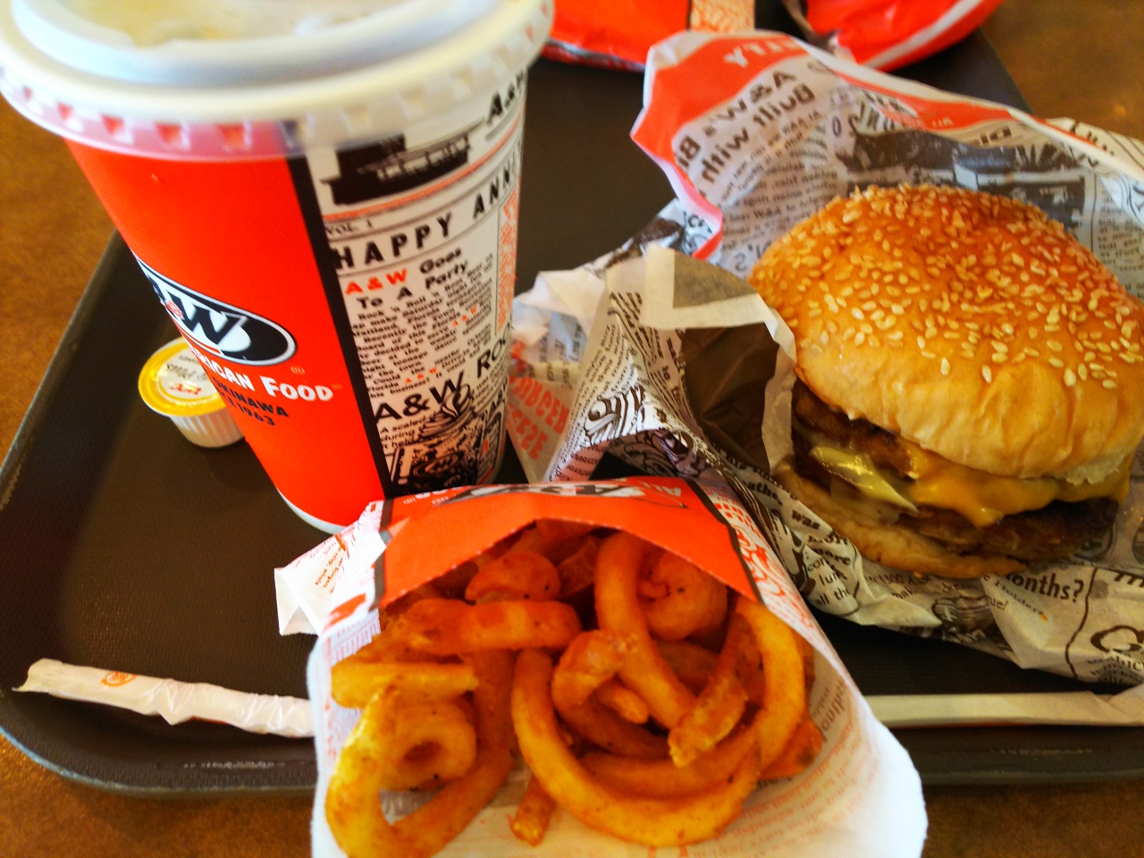 基本的には普通のA&Wと変わりませんが、時間の制約がある客が多いせいか、店員さんがきちんと誘導してくれるなど、対応がとても良いと思いました。