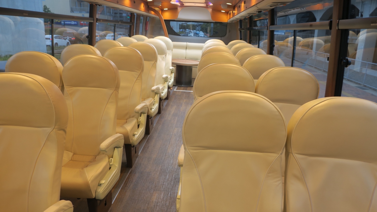 佐世保、ハウステンボスからの観光バスで、6000万円をかけて4年前に完成。それから多くの観光客を案内している。ゆったりとした座席とともに、牛革のシートで、しばらくの雰囲気を楽しむことができる。運転手さん、ガイドさんの案内とともに、なんとなく佐世保が素晴らしく見えた。