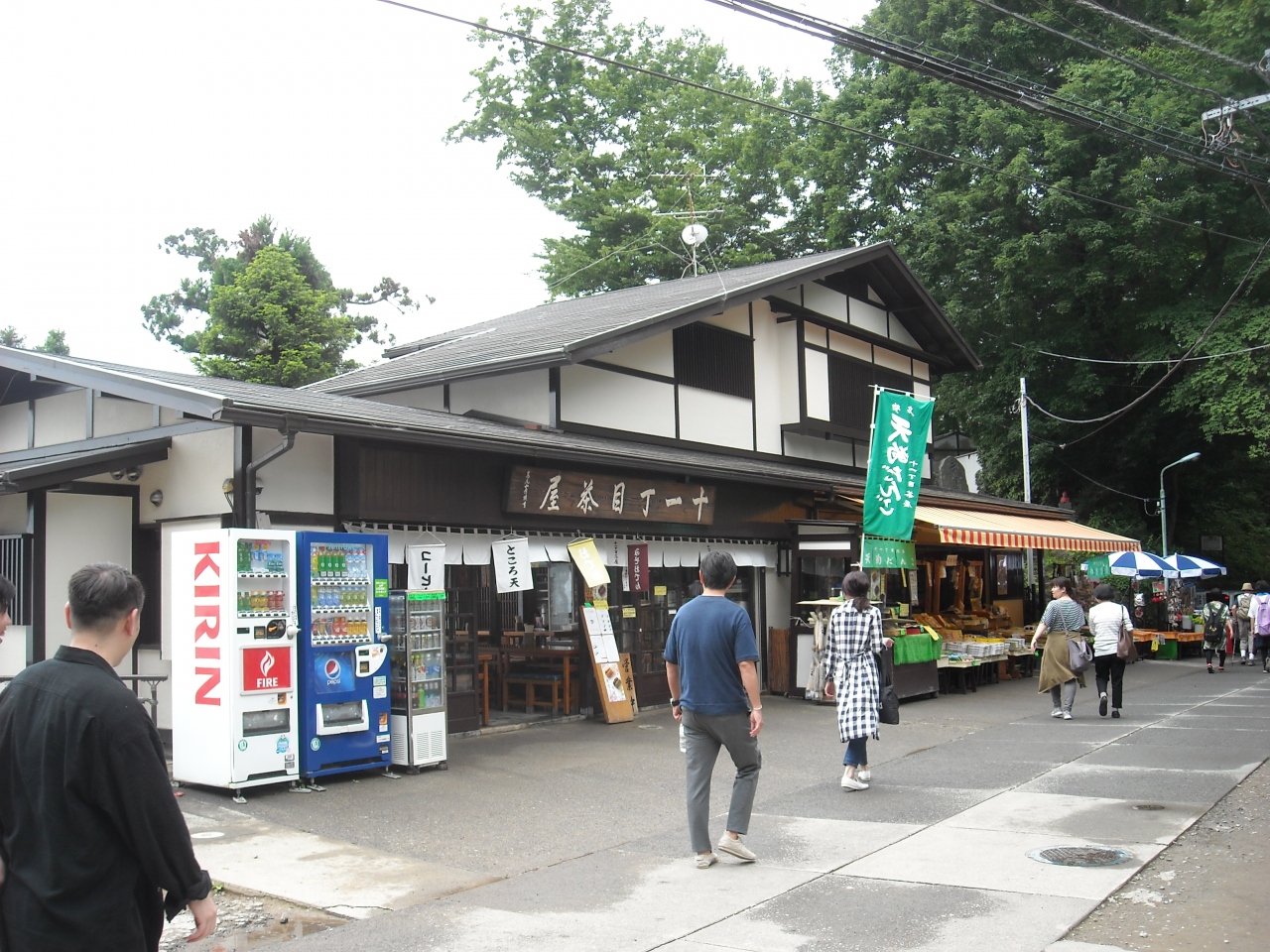 昔は薬王院門前にあったように思っていたのですが、今はケーブルカー乗り場近くにあり、憩いの広場のような趣があります。蕎麦屋と土産物店、隣りに見晴らし展望台と風情があります。何となく昔風の建物が心安らぐ感じです。