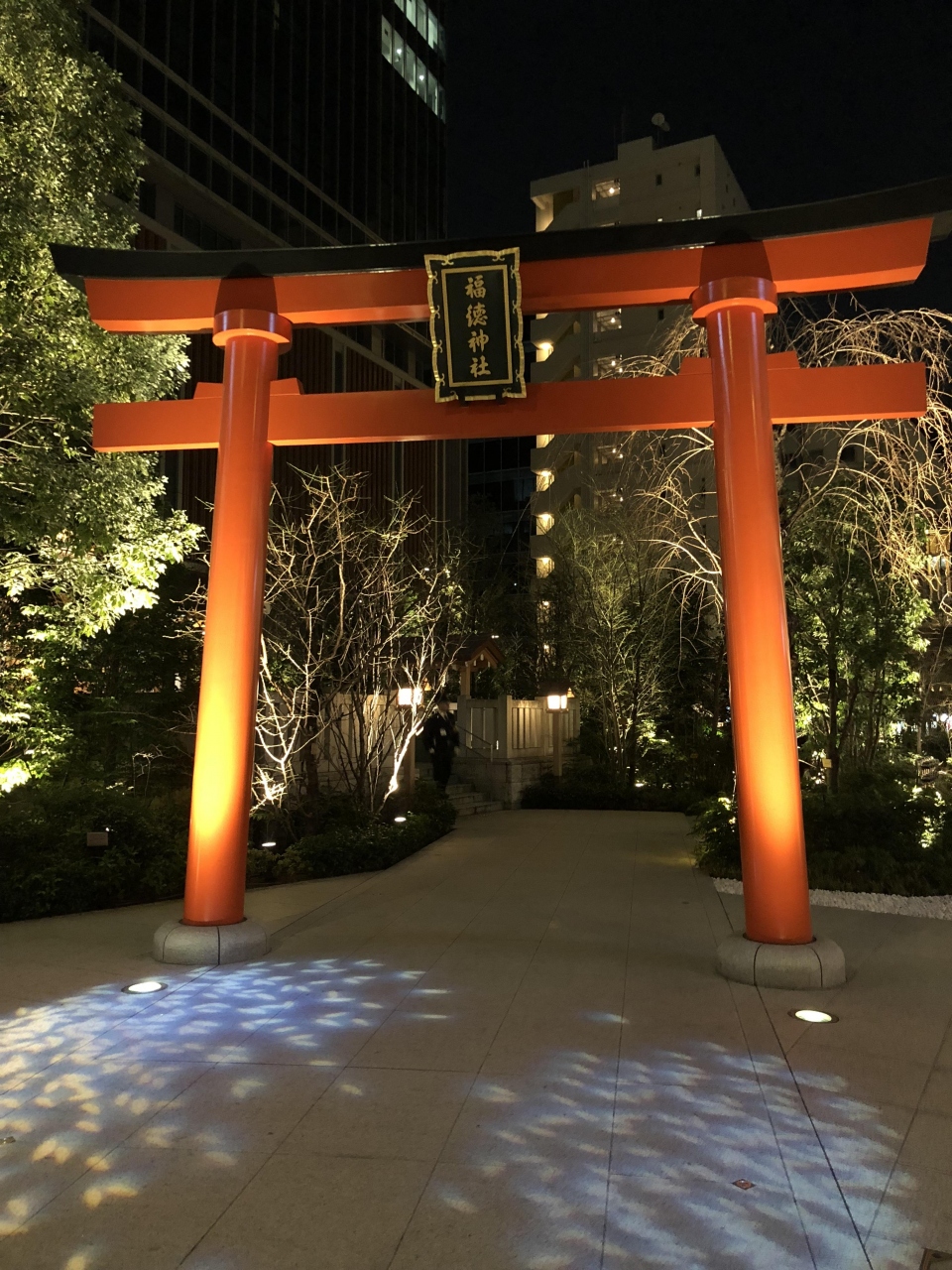 夜行ったので鳥居などライトアップされていて、外国人観光客が撮影などしてました。