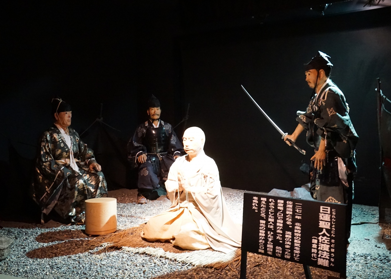 順徳天皇を祀る真野宮の隣にある佐渡歴史伝説館。佐渡の歴史について、リアルなロボットの説明に従って進んいきます。