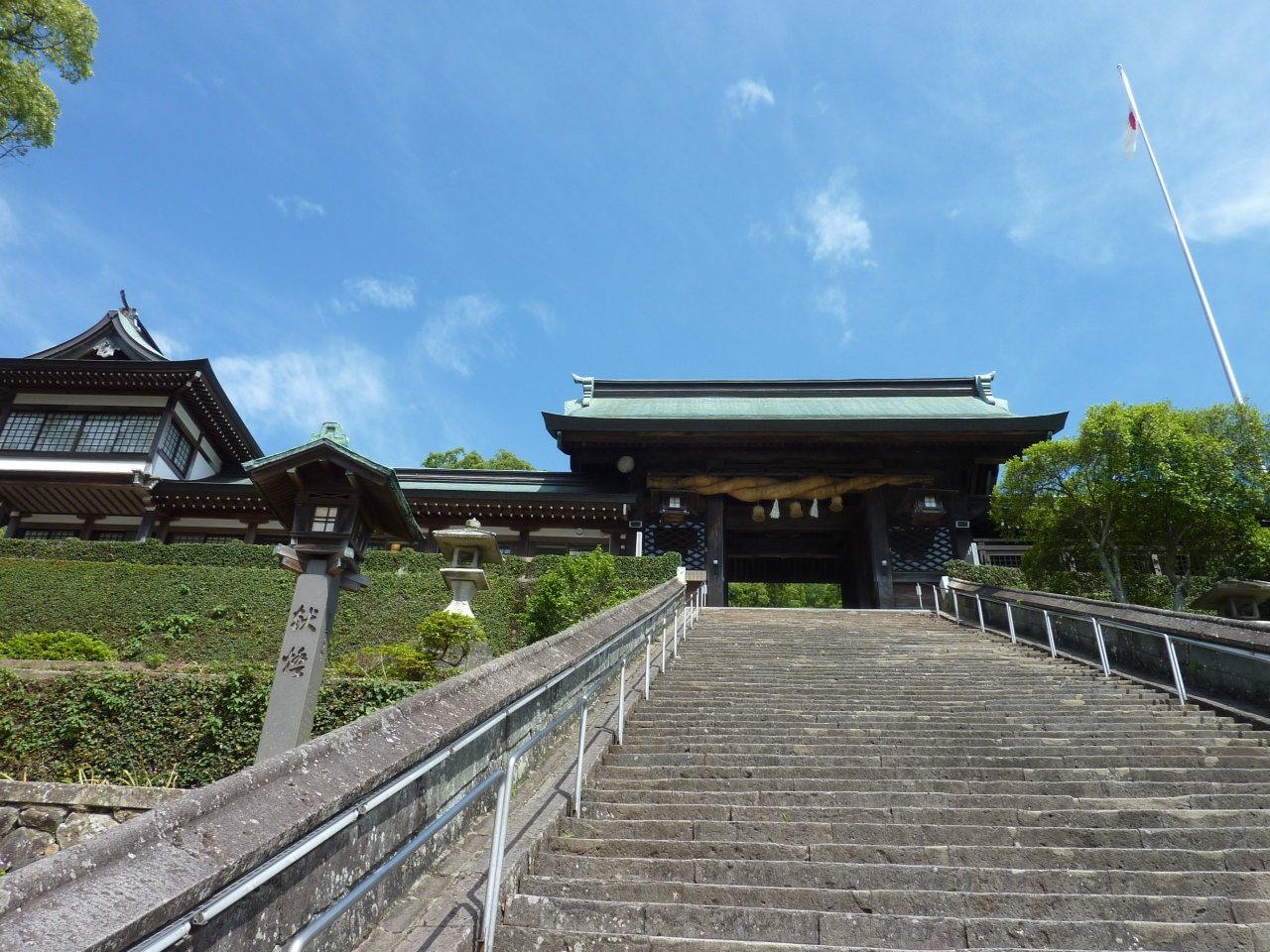 山沿いにある大きな神社。電停からの距離はそれほどありませんが、急な階段を上った先の高台に拝殿があります。境内には大きな馬の像がある立派なは拝殿の神社で、とてもきれいに整備されていました。