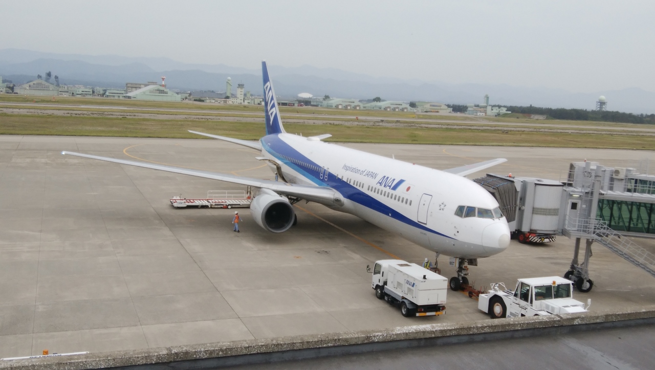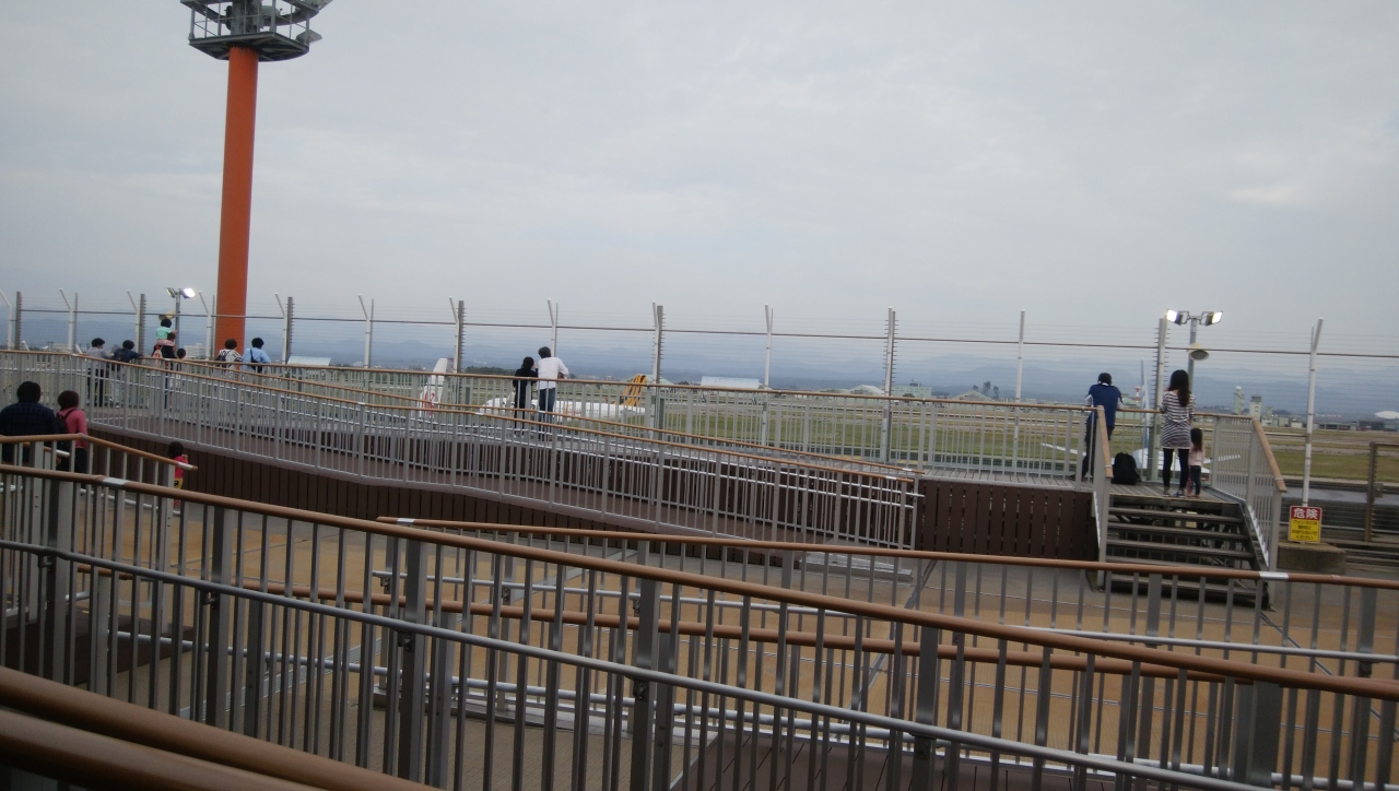 ターミナル2階からさらに階段を上がりデッキに出ます。旅客機はもちろん自衛隊機の離発着も見ることができます。エンジン音もじかに聞くことができ飛行機好きにはたまりませんでしょうね。白山をバックに離陸する飛行機、絵になります。