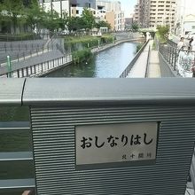 東京スカイツリーと東京ソラマチの足元の北十間川を横断する人道橋のおしなり橋。