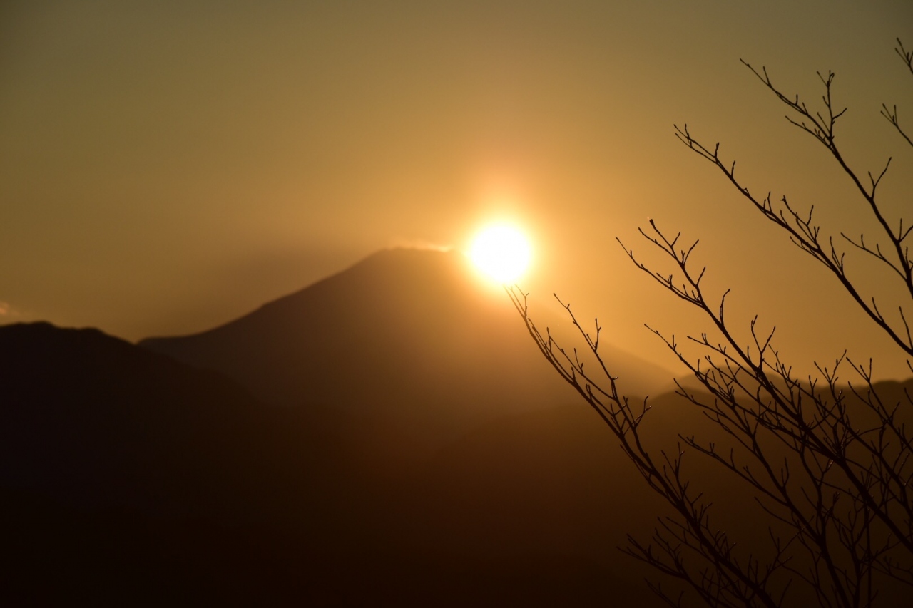 午後三時くらいから登って、夕日が沈むのも見ましたが、富士山と重なってとても綺麗でひた。