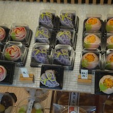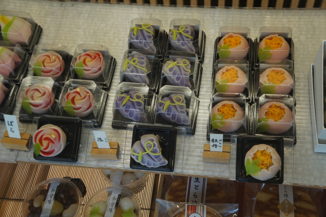 菓匠 花見は、浦和駅西口を出てすぐ。店内には工芸菓子が飾られていたりして本格的な和菓子屋さんですね。ケースに並んだ和菓子も色彩が鮮やかで豊かな景色。これはいいですねえ。