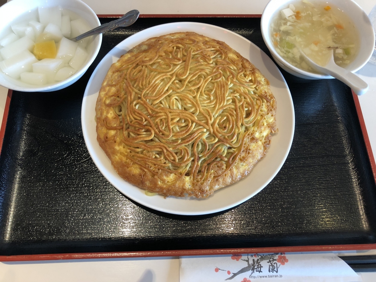 ランチセットのAを食べました。焼きそばとスープと杏仁豆腐が付いています。