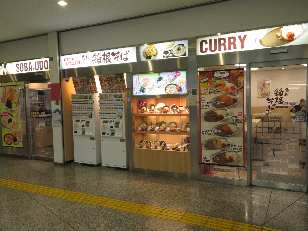 小田急線沿線にある小田原グループ経営の立ち食いそばのお店です、小田原駅の改札口横にあり、朝7時から夜9時45分まで営業しているので便利です、電車の発車時間に合わせて食べることができます、私が食べたざるそばが390円でした、そばの他カレーレイスもあります、カレーセットやカツ丼セットもあり、早く安く食べることが出来ます。