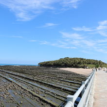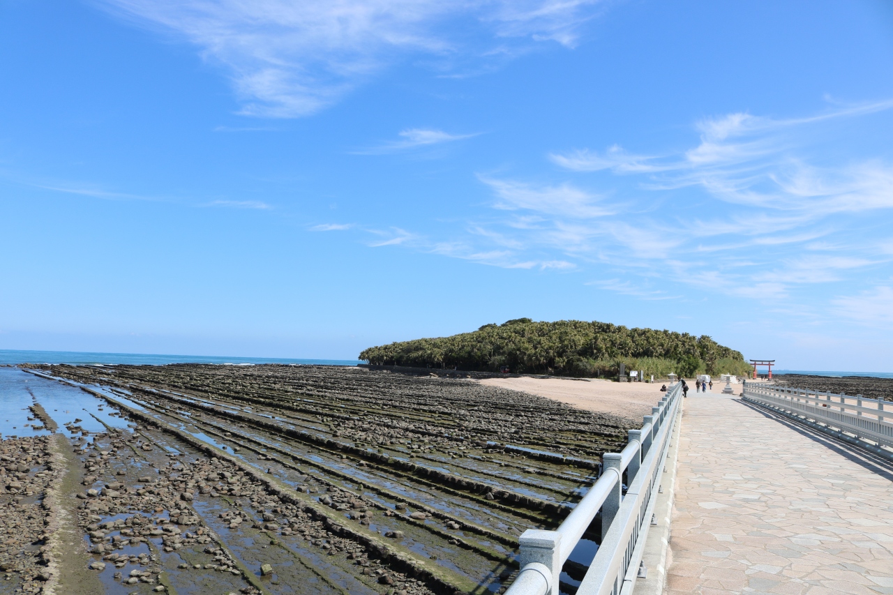 隆起海床と奇形波蝕痕という独特の岩を見ながら、島へ渡ります。昔は新婚旅行の第1の目的地だったり、巨人軍のキャンプで有名でしたが、今は静かです。洗濯板が何とも切なさを醸し出していました。砂浜は少ないです。