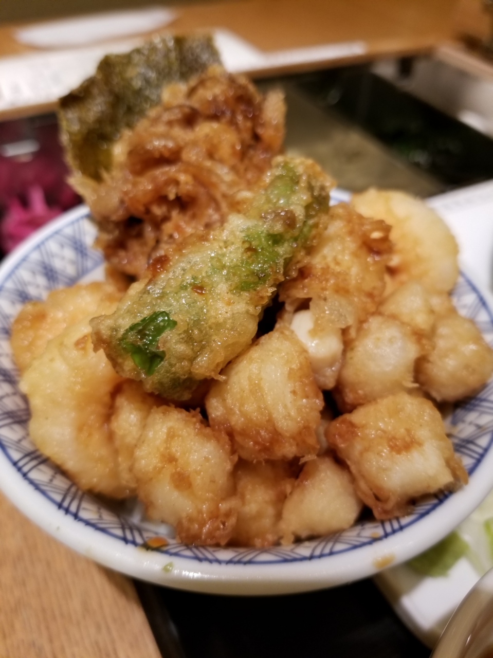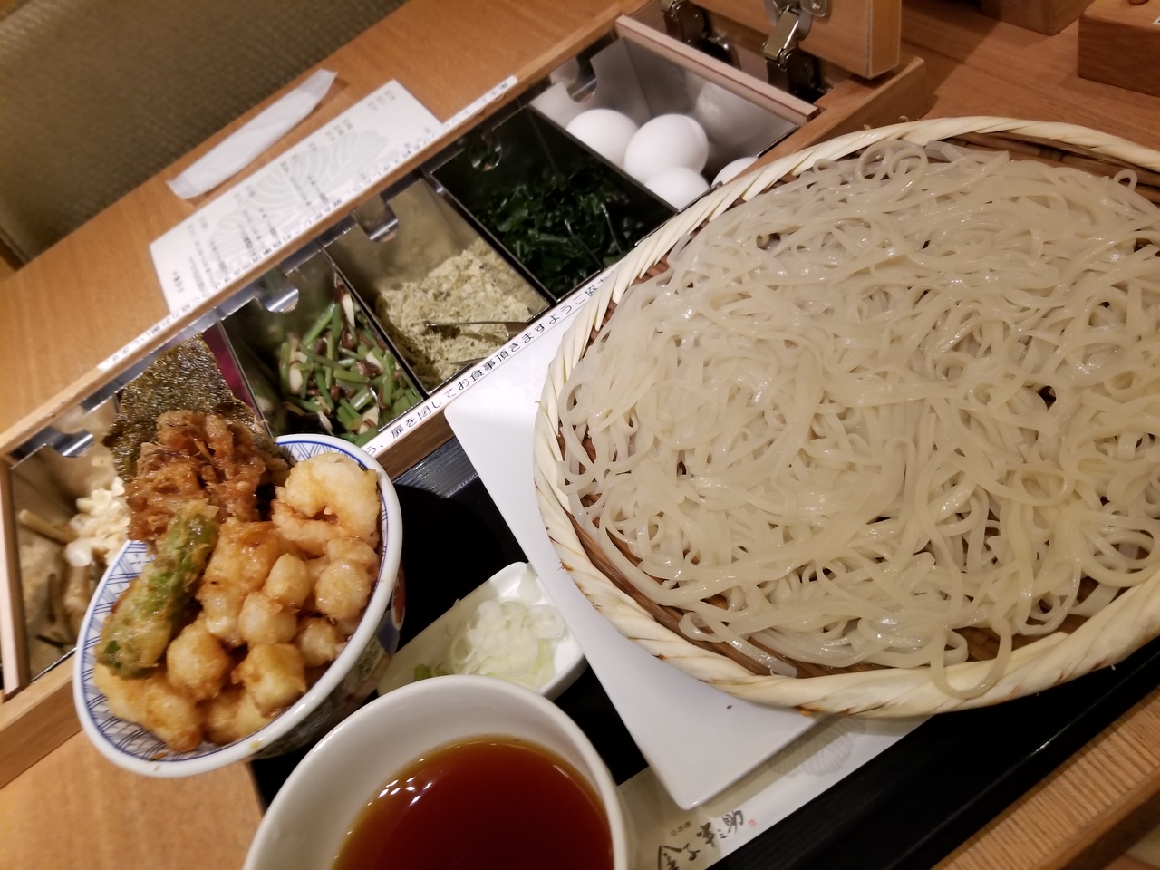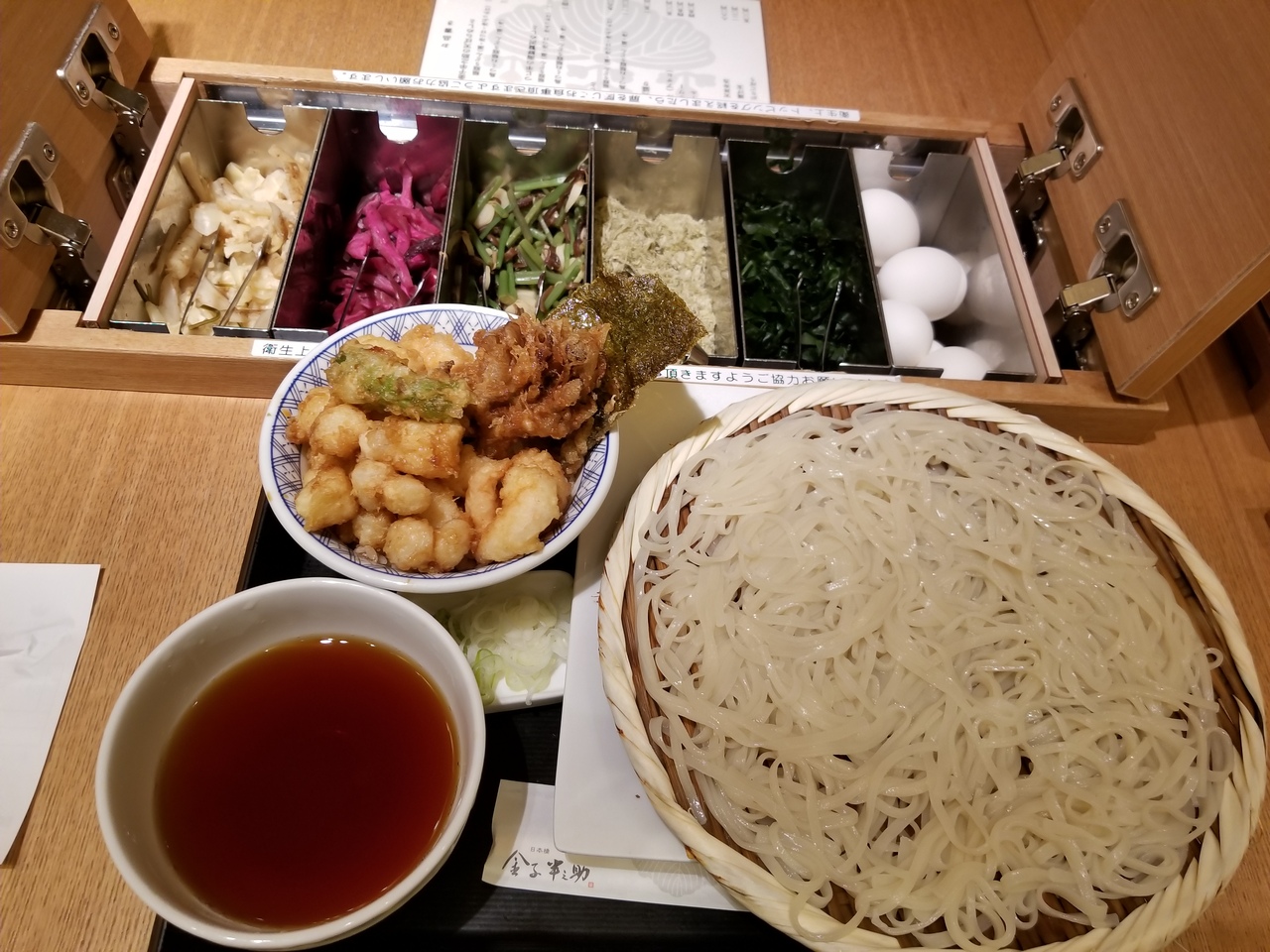 日本橋の名店、金子半之助系の別店のこちらに行きました。稲庭うどんと、辻田の海鮮丼、プラス天ばら丼がセットで選べます。圧巻なのが、食べ放題取り放題のトッピング!温泉卵、わかめ、とろろ昆布、山菜、自家製のガリとゴボウの漬物、、温泉卵に絡めて、シコシコの稲庭うどんを頂きました。美味しかったです。天ばら丼も具材がたくさん入っていて、お腹いっぱいになりました。お味は最高でコスパも1200~と、最高です!