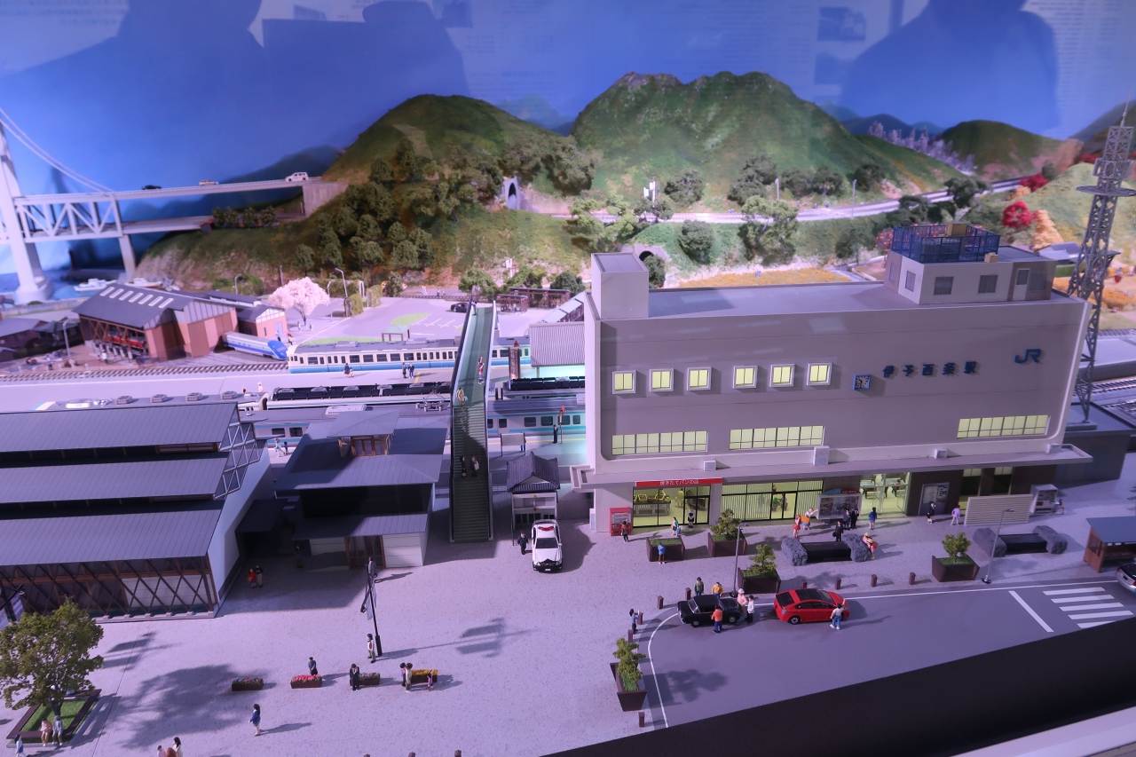 伊予西条駅舎に隣接する北館には0系新幹線とディーゼル機関車の現物、新幹線に関するパネル展示が、跨線橋を渡ったところにある南館には急行型気動車とSLの現物、四国の鉄道に関するパネル展示、JR四国をイメージしたジオラマがあります。ジオラマは1時間に1回の運転でリアルでよいと思いました。南館、北館と隣接の十河信二記念館共通で300円です。西浦特急鉄道と旅のブログに訪問記を掲載しました。12月30日記事参照。