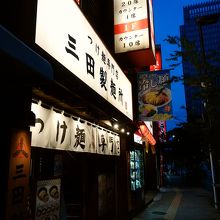 JR御茶ノ水駅からすぐのところにある三田製麺所です。つけめんが美味しいお店で時間帯によっては行列ができるほどです。同料金で大盛りを食べることができますが、太麺なので大盛りはかなりボリュームがあります。つけめんを食べるならおすすめのお店です。