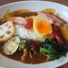 約2年ぶりに来店。(土)の12時半前は店内は半分くらいの席が埋まっていた。2階の窓際の席1(席のみ)に案内された。席は広めのBOXタイプ。階段には鏡がたくさん飾られていた。カレーの辛さ、ご飯の量は調整可。具たくさんの野菜カレーは大きめにカットされた野菜が入ってるのでナイフがあればベター。