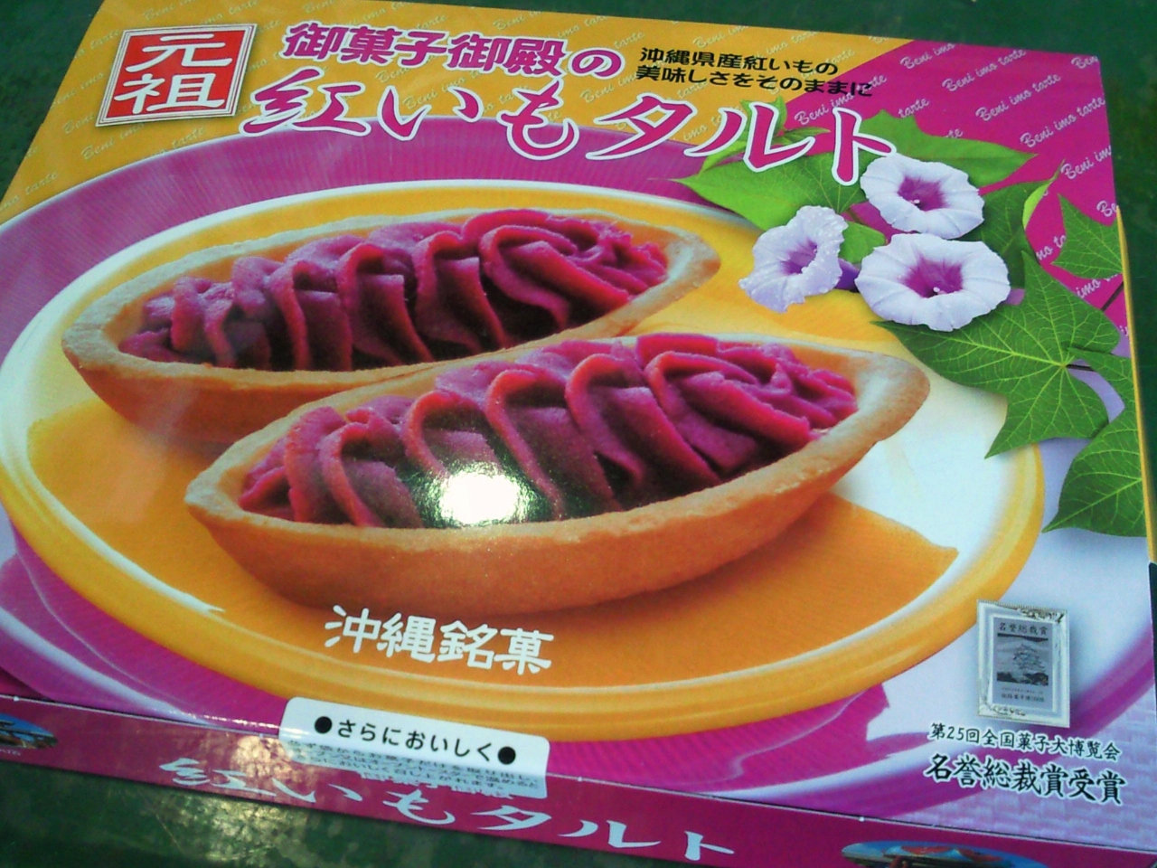御菓子御殿は、沖縄に何軒も店舗を構えており、その他の土産屋にも「紅芋タルト」は置いているので、定番中の定番のようです。