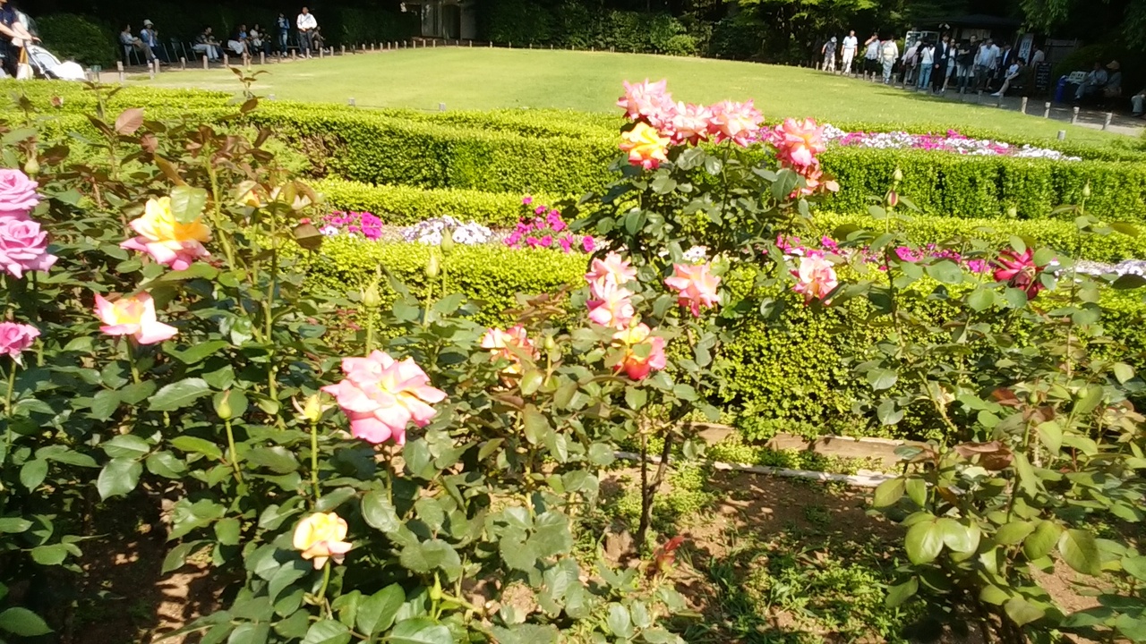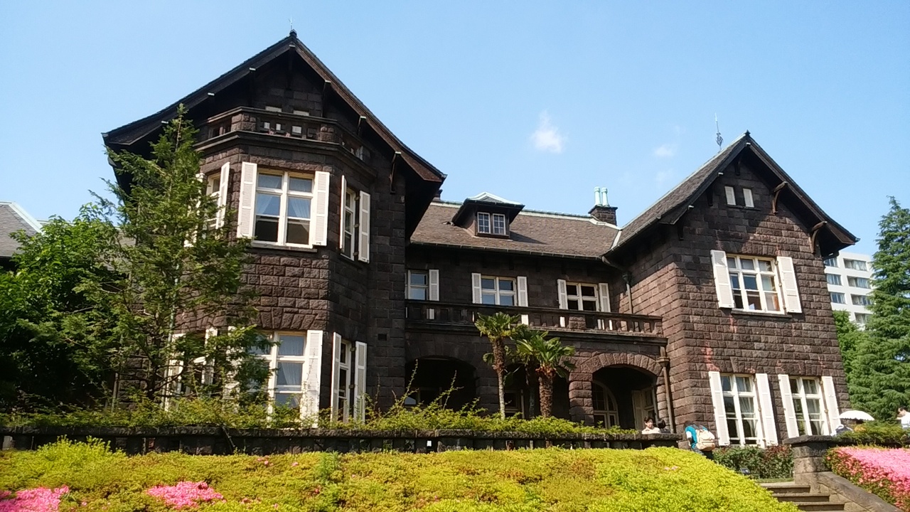 洋館は貸切で残念ながら見学できませんでしたが、洋館前の洋風な幾何学模様の庭園にいろいろなバラが綺麗に咲いており、洋館とマッチして良い眺めでした。