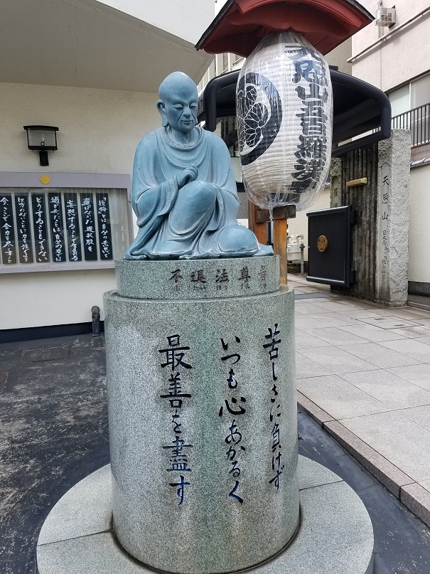 建物の外に一つ真新しい像がありますがこんなかんじの像で古く歴史があるものが数百体並んでいるお堂があります。