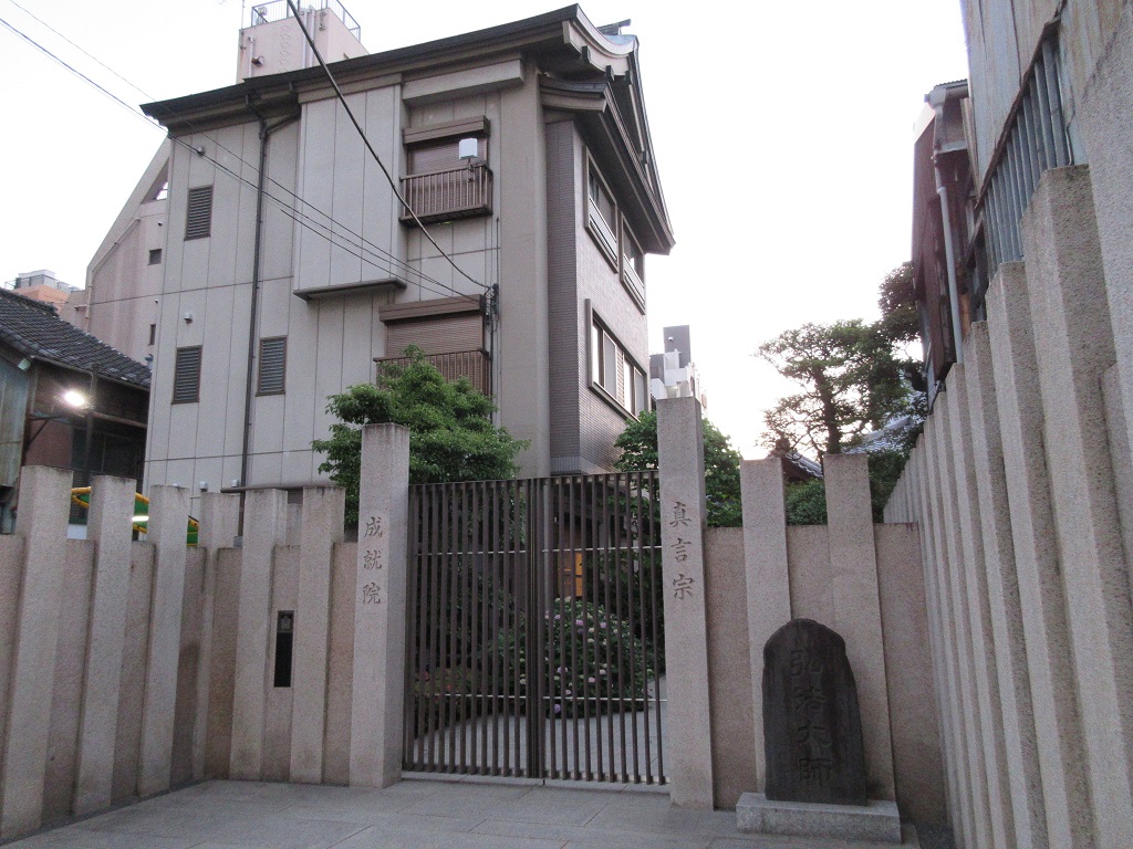 地下鉄稲荷町駅の南側にある真言宗お寺「成就院」に行ってきました。立派な石の門柱の先に都会らしい狭い境内があり、奥に本堂が見えました。ただ本堂よりも左手にある3階建てののっぽの新しい建物が印象に残りました。住職の生活の場なのか敷地が狭いだけに圧迫感がありました。
