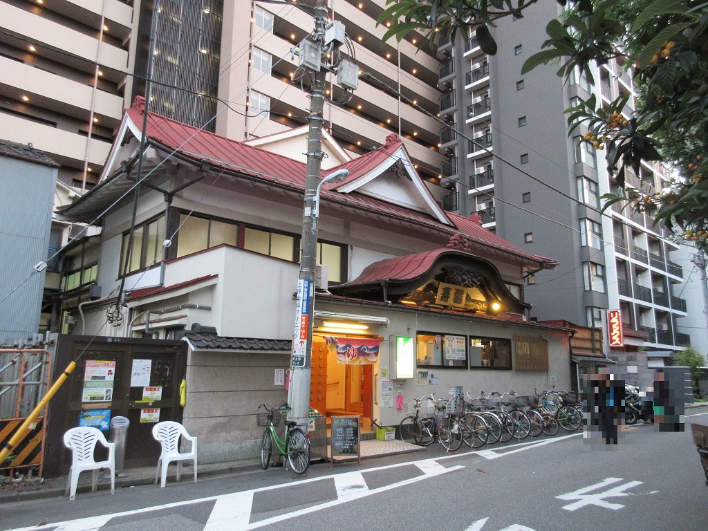 田原町から稲荷町までお寺巡りの散策をし、そろそろ稲荷町駅に到着する頃、昭和の雰囲気漂う「寿湯」を発見。タオルも使えますので、さっそくひと風呂浴びに立ち寄りました。昔ながらの雰囲気の脱衣所があり、私のような昭和世代には使いやすいかったですね。大きな湯舟に浸かると血行が良くなり体の疲れがとれました。外国の方には日本らしい風情を感じる場所のようで、銭湯を出ると「寿湯」の建物を右に、正面に東京スカイツリーが入るように写真撮影をしている旅行者がいました。振り返ると確かに夕日を浴びたスカイツリーとのツーショットは美しいと思いました。