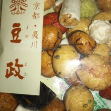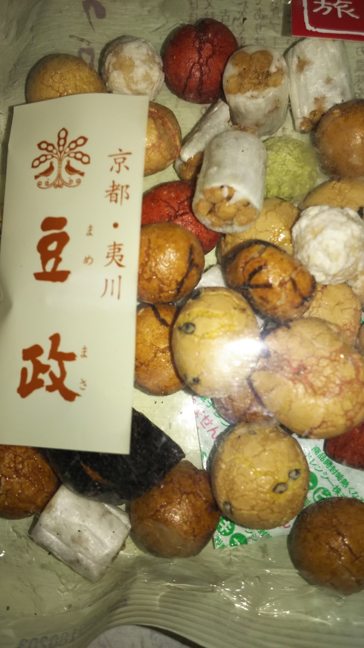 京都、夷川にある豆菓子や和菓子のお店、豆政さん。お豆好きをアピールしていたので、こちらのお豆のお菓子をおみやげでいただきました。中にお豆が入っているあられのような一品。お茶にもビールにも合います。食べ出すと止められません。