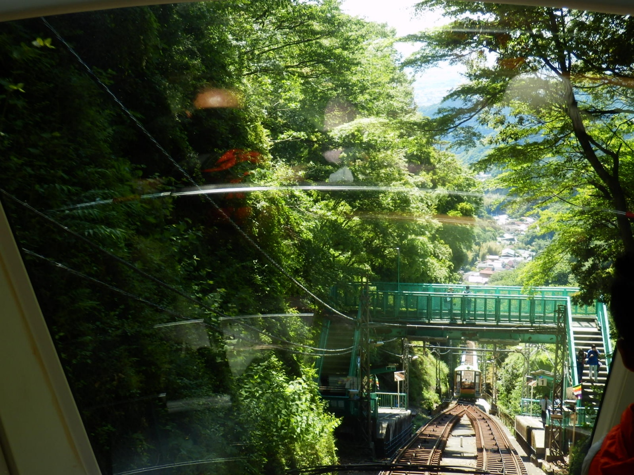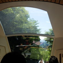 急斜面を進むため、ケーブルカーはかなり傾いていました。前面は大きなガラスで、天井部分も一部ガラス張りになっていたので、眺めがとても良かったです。海までも見えたので驚きました。