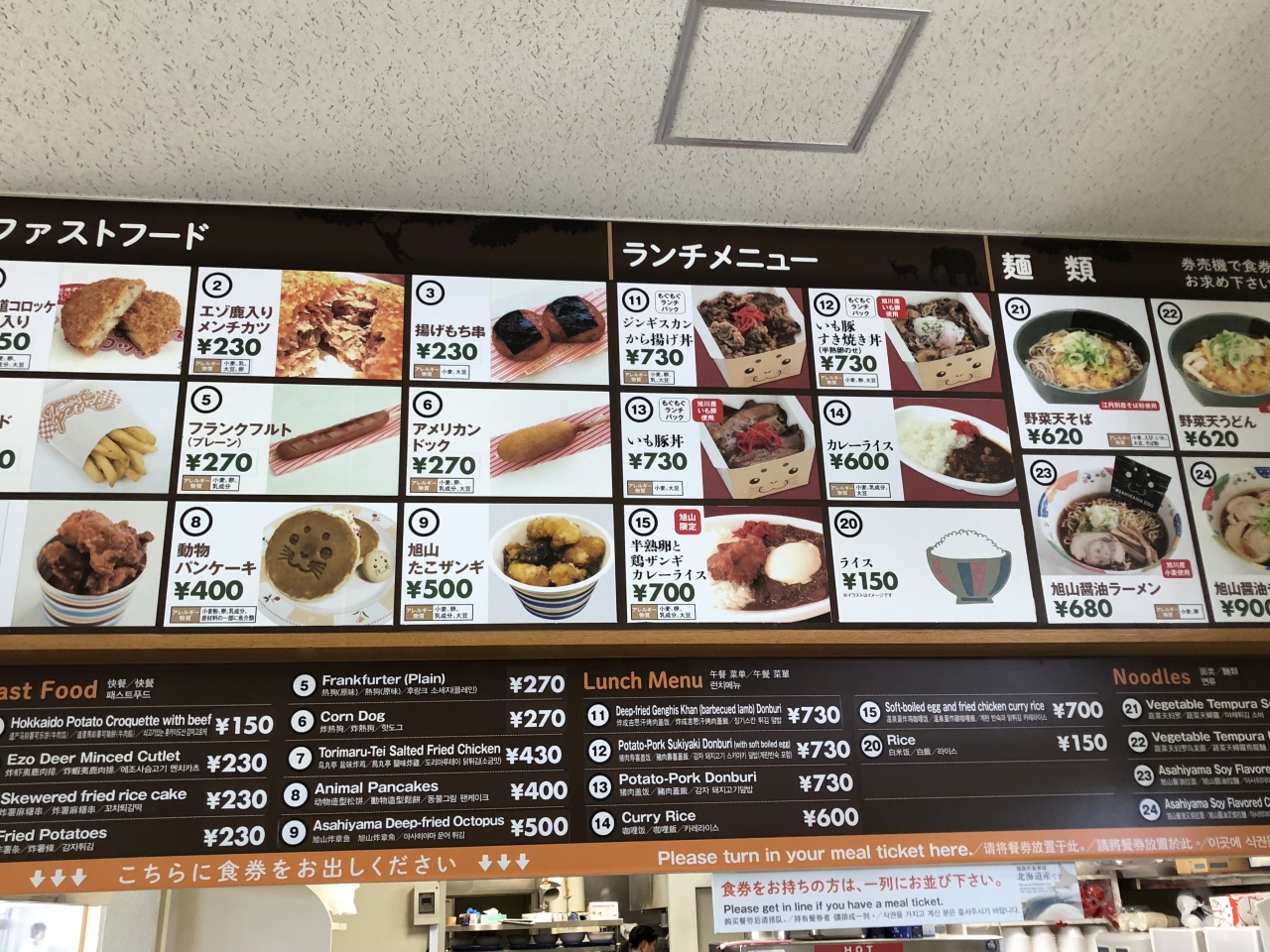 広い食堂で屋上からは動物園は旭川が眺望できます。