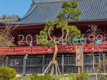 丸い輪っかの形した松の木です。寛永寺清水観音堂の前にあって、「月の松」と書かれた大きな看板があります。正面下から見ると全景が見えて良いと思います。上野恩賜公園は日本一のさくらの名所だけあって、かなり混雑してました。