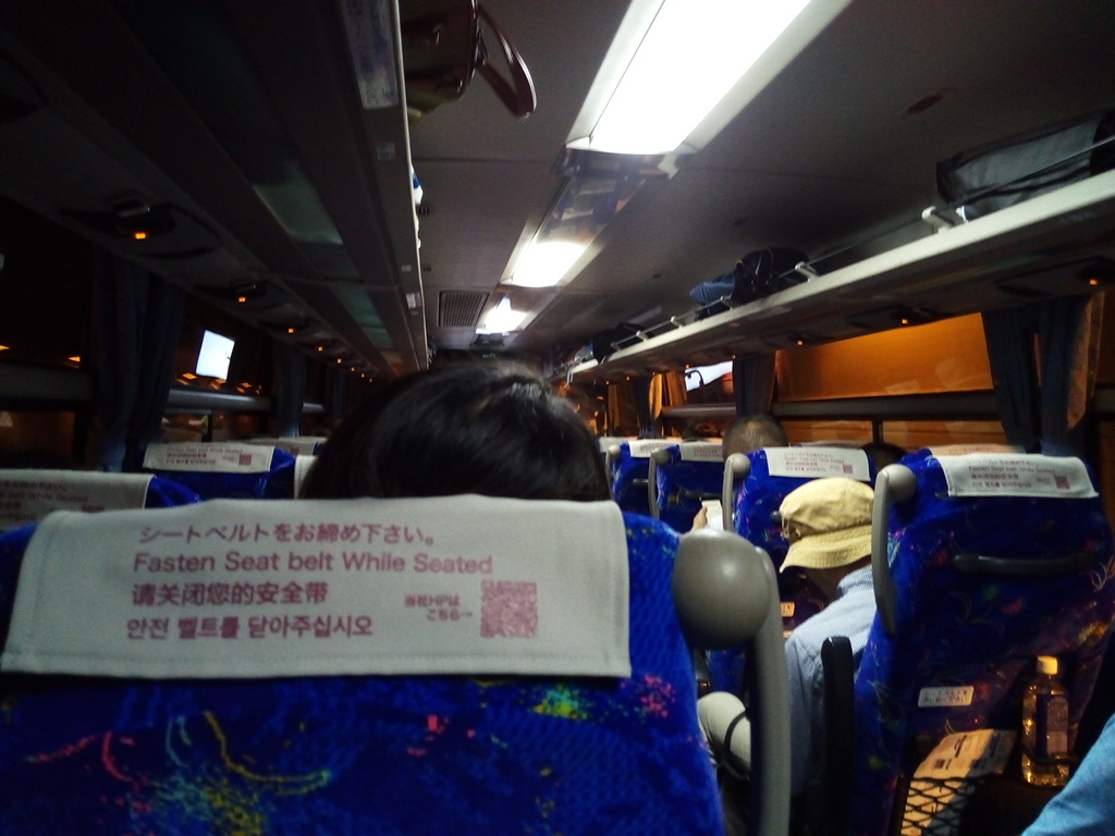 この路線はなぜか予約することが出来なくて、空席があれば乗車できるとの事。始発が千葉駅であちこち経由してから海浜幕張駅へ来るので乗れるかどうかバスが来るまで分からない点が難です。結局海浜幕張駅で待っていたお客さん全員が無事乗車出来ましたが、後ろの方に並んでいたお客さんは補助席に座らなければいけなかった程の混雑ぶりでした。