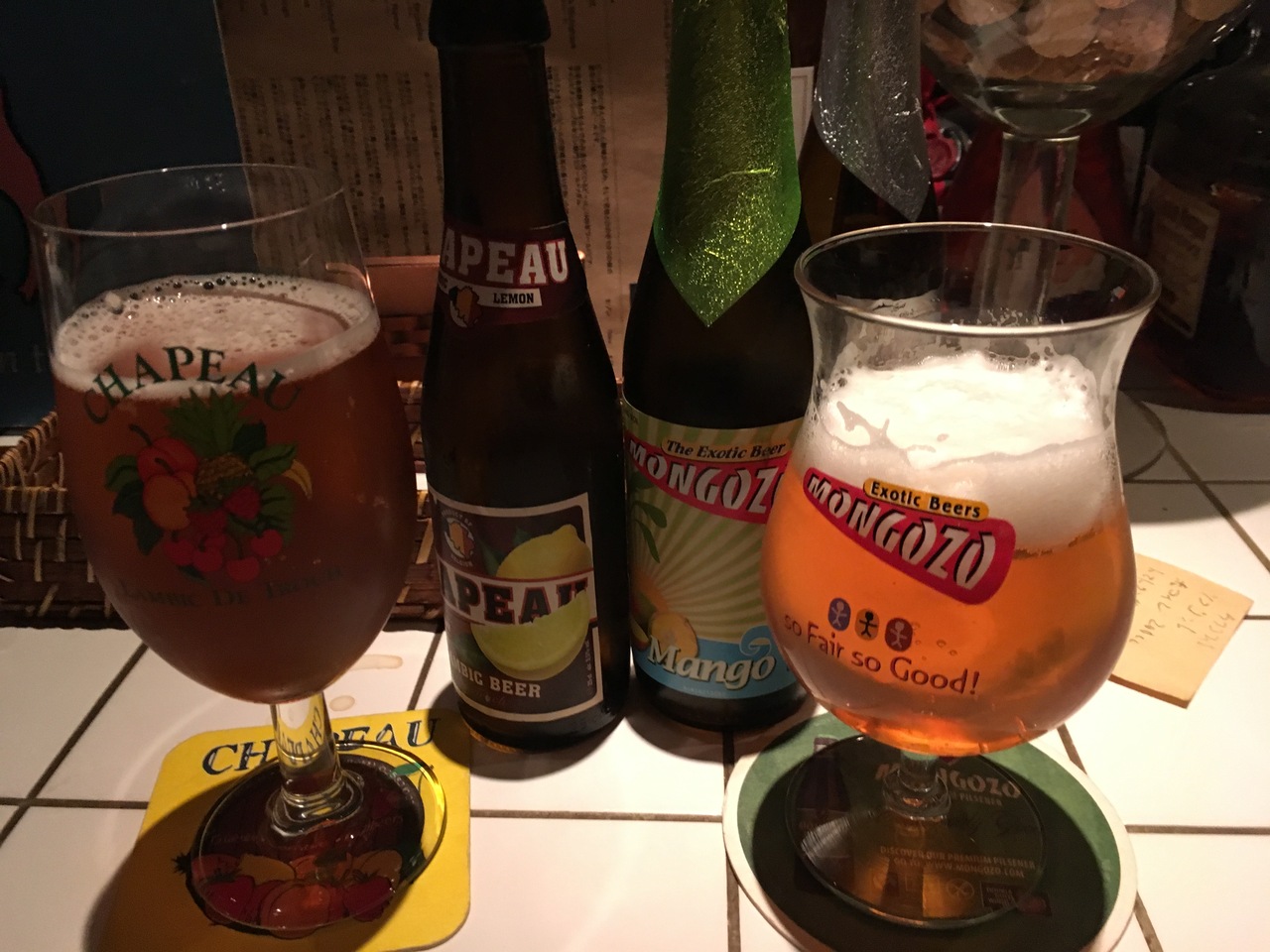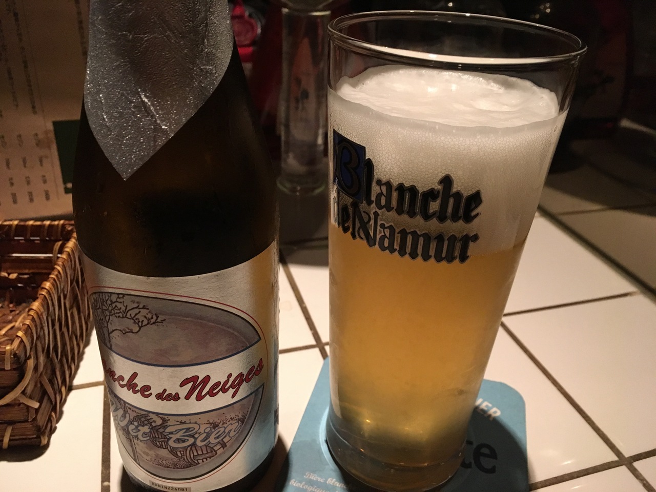 ワインの品揃えも素晴らしいのだが、ワインを嗜まない我らはひたすらベルギー瓶ビールをあれこれと試してみる。「確かにこれはパンチが効いたビールだね」「こっちは酸味があって面白いね」銘柄が異なれば当然のようにビールの色も味も異なり、コースターも変えてくれる。