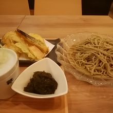 「野菜天せいろそば」1026円(税込)と「あかもく」216円(税込)を注文してみました。こちらのお店は宮城県や秋田県の食材を扱っているよう…。