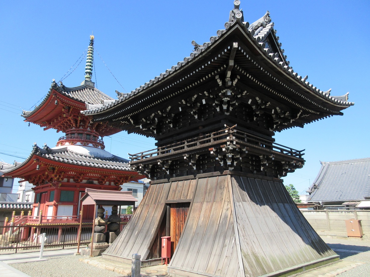 阪神尼崎駅から徒歩圏内にある寺町散策の際に訪れた、本興と並んで寺町を代表する名刹がこちらの長遠寺です。山門を潜る前から、赤い多宝塔が見えますし、境内に入る鐘楼や本堂といった見ごたえのある建物が目に飛び込んできました。本堂と多宝塔は重要文化財に指定されていて、景観の面でも文化財の面でも抜きんでた存在だと思いました。