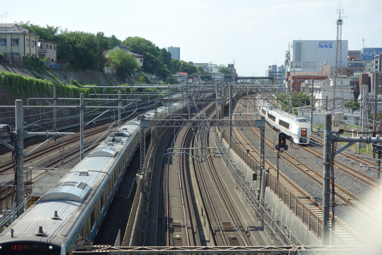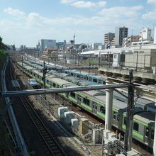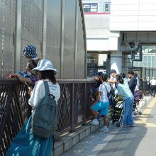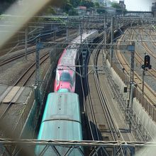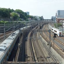 橋の上から沢山の種類の電車が見えるので有名です。1日に約2500本の電車が走り、別名トレインミュージアムとか。