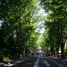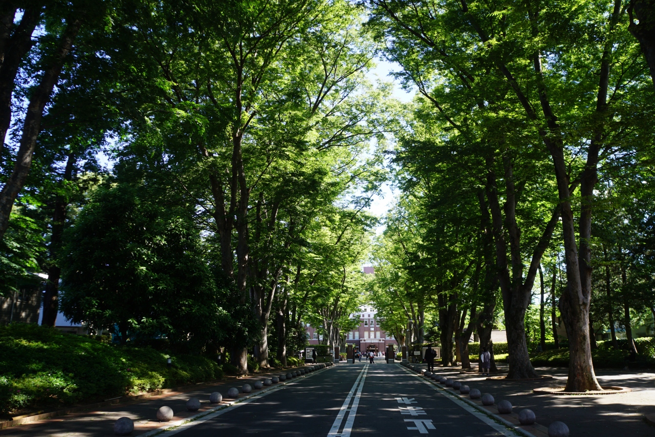 成蹊学園ケヤキ並木は、吉祥寺の市街から五日市街道を西へしばらく歩いたところ。五日市街道からこんもりした緑が見え始めるとそれがこの並木でした。キャンパス入口に向かう並木でそんなに長くはないんですが、太い幹に揺れる木漏れ日とかが意外に気持ちいい。子供が遊んだりまではできませんが、ほっとする雰囲気がある並木道になっています。
