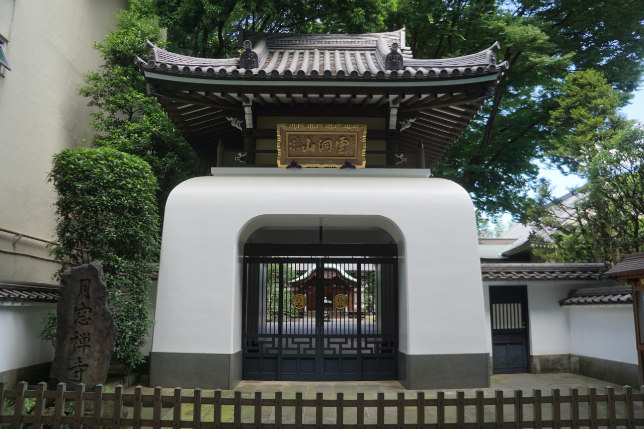 月窓寺は、サンロード商店街の中ほど。竜宮城の門みたいなずんぐりとした山門が特徴的です。ただ、鉄の扉は閉まっているので、境内には入れない。外から中を窺うしかありませんが、緑豊かな広い境内に、本堂の建物も威厳あり。
