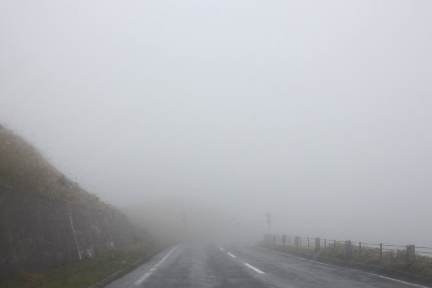 今回は羅臼からウトロに向かって峠越えをしました。青空の広がる羅臼から登り始めて、熊の湯を通り過ぎてしばらくは青空が覗いていました。高度を上げるにつれ、曇り空となりガスも出て来て、その後は、ガスが濃くなり、粒も大きくワイパー必須、そして、見通しも悪くライトも点灯です。辿り着いた峠の駐車場はガスと強風で、1、2台が駐車しているだけでした。ウトロ側に下ると、間もなくガスも晴れてきましたが、こちらは朝から雨が降っていたそうで、お天気回復途中といったところでした。東京に住んでいると、知床の天気は?と1つの場所と思ってしまいますが、東側と西側ではまったく別の場所なのですね。