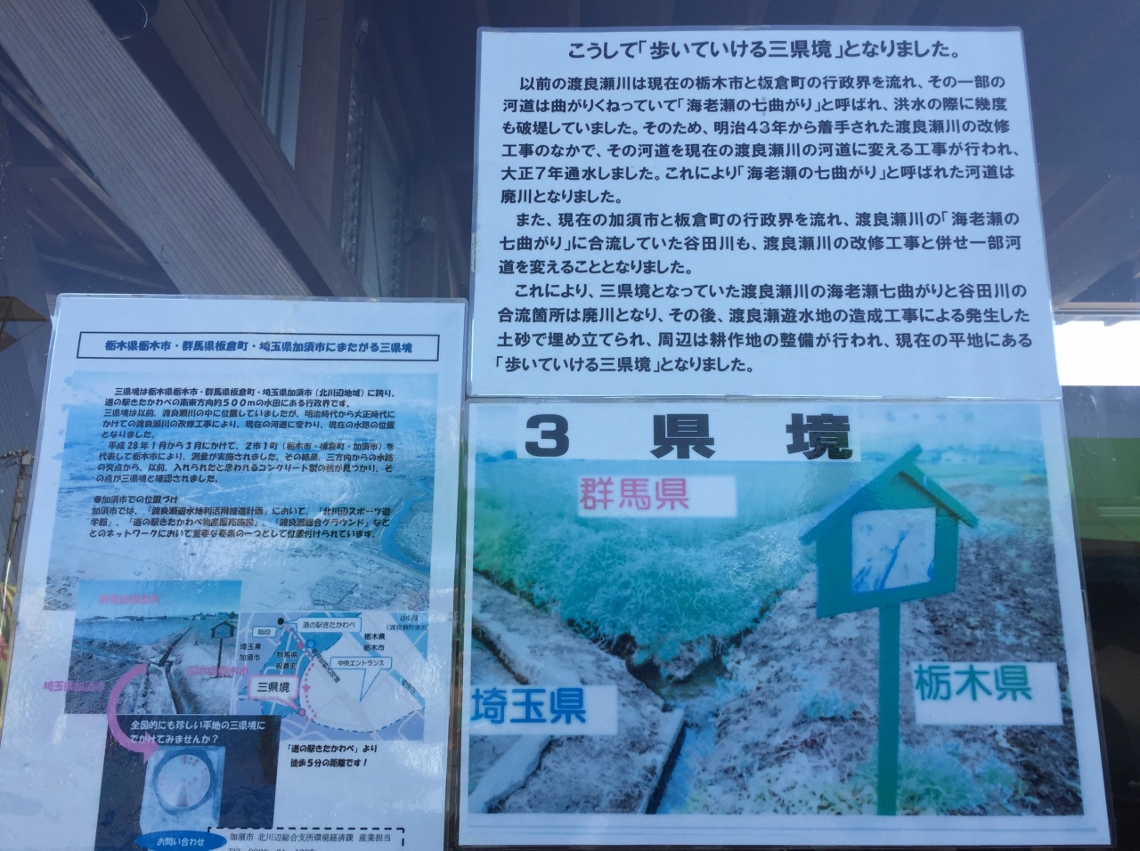 以前からTV番組で、埼玉県、栃木県、群馬県の3県の県境が田んぼの中にある珍名所として取り上げられていた三県境ですが、つい最近、地元自治体によって綺麗に整備され、新しい観光地として生まれ変わりました。